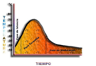 Temperatura. En la fase termófila deben alcanzarse entre 40º y 70ºC para que así se puedan eliminar posibles elementos patógenos y la mezcla esté higienizada. Si metemos la mano en el montón debemos comprobar que está caliente (también podemos comprobar la temperatura con un termómetro terrestre); esto va a ser indicativo que el proceso marcha de forma adecuada. Cuanto más dure ese estado, mejor.